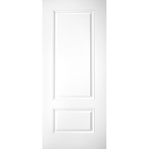 The Designer Arch smooth white fiberglass door combines pre-pigmented door skins with composite stiles and rails, leaving no exposed wood. The maintenance-free door requires no painting and carries a 25 year limited manufacturer's warranty.