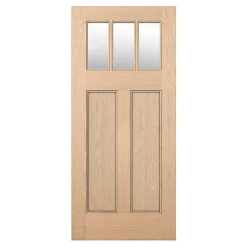 Featuring a Craftsman style 3-lite glass panel over two solid flat panels, this real wood exterior door is a simple and beautiful addition to your home entry. Your choice of hemlock or meranti mahogany, plus multiple hardware options.