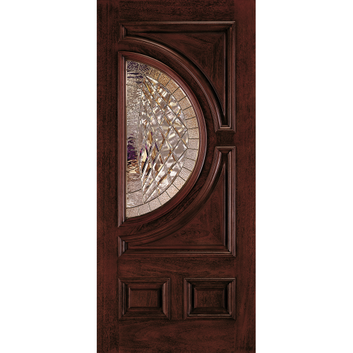 Featuring a half circle glass area and distinctive raised panels, this fiberglass exterior door adds elegance and character to your entryway. Handcrafted for exceptional beauty. Choose from a wide range of woodgrain, paint and iron look finishes, decorative accents and glass options.