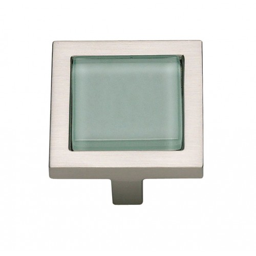 Spa Green Square Knob 1 3/8 Inch Brushed Nickel