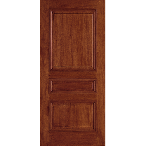 This stunning custom wood entry door boasts three raised panels of varying sizes with elegant sticking profiles. Choose from a wide range of wood species, finishes and decorative accents to suit your home style.