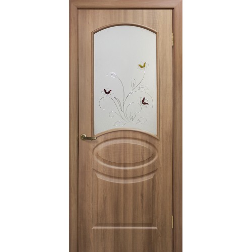 Hollow door (wooden frame filled with cupboard cells, covered with laminated MDF) with matte glass inserts