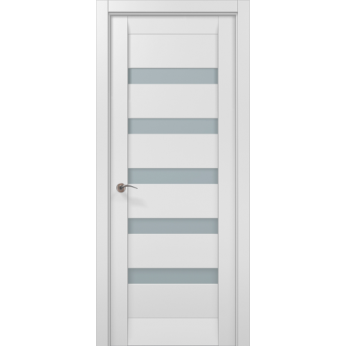 Stylish, Modern style door with satin glass inserts, that can be installed into any room that requires some light.