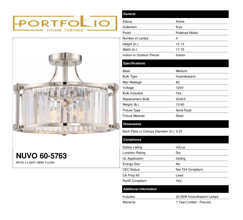 Primary Bulb(s): 3 x 60.00 watts ST19