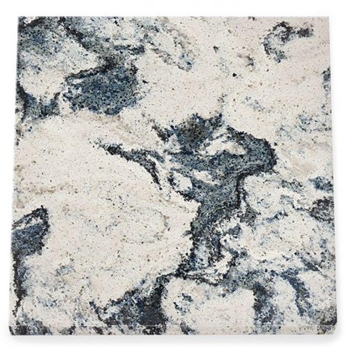 A sedate white-cream background with intermixed splashes of pale blue, navy, and gray is accented with a smattering of tan and taupe throughout.