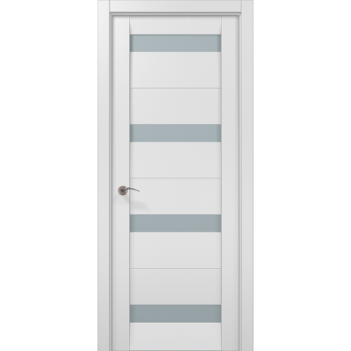 Stylish, Modern style door with glass inserts, that can be installed into any room that requires some light. The door doesn’t provide a full privacy due to a few Satin glass inserts. However, its 23% transparency prevents from seeing the details beyond. Mostly used in: Family, Dining rooms, Library, Office etc. Matching style model with Full privacy: ML-04 and ML-04Al. Inserts: MDF board, wrapped with finish ECO-Veneer Renolit, Satin glass. Color: Matte White. Application: Single Door, Double Doors or Sliding Door (special hardware is required).