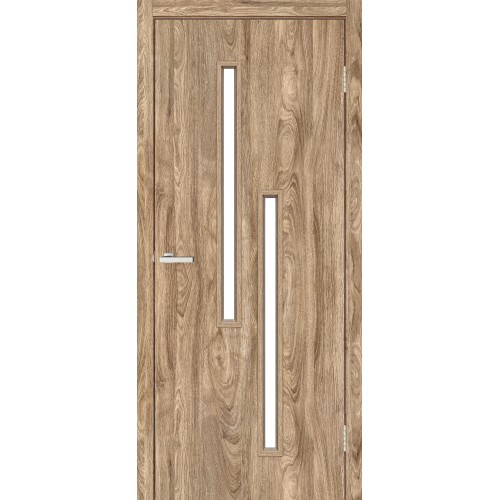 Hollow door (wooden frame filled with cupboard cells, covered with laminated MDF) with matte glass inserts