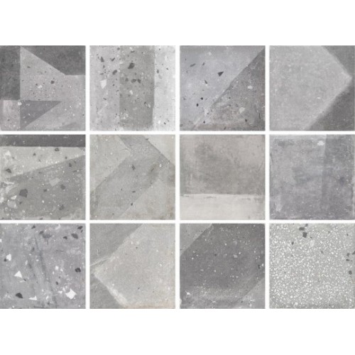 Decorated that reinterprets the terrazzo creatively. It has an application that gives you small flashes of brightness. The mixture of stony and cement finish allows this decoration to be combined with the Factory and Emporio series.