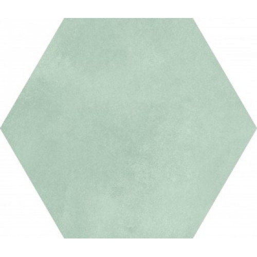 21.5×25 concrete effect hexagonal porcelain tile. In a soft, warm bone-colored hue with a wet concrete effect, slightly faded.