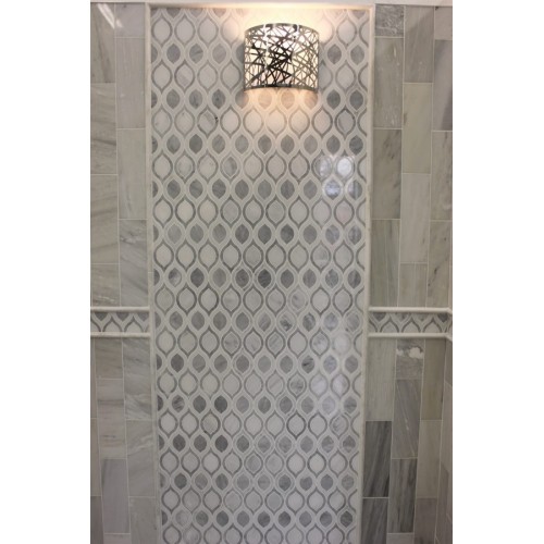 Made from top grade oriental white and grey marble which has great hardness, high density and almost zero water absorption rate, mixed with glass, this arabesque artistic tile absolutely light up your living space in no time.