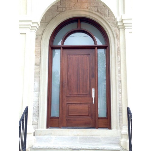 Wood single 2 panel door with special design made transom and 2 sidelights