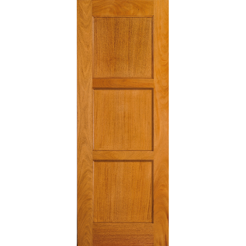 The clean, geometric lines of this custom wood entry door with three flat, uniform panels is ideal for contemporary and craftsman architectural styles. Choose from a wide range of wood species, finishes and decorative accents to suit your style.