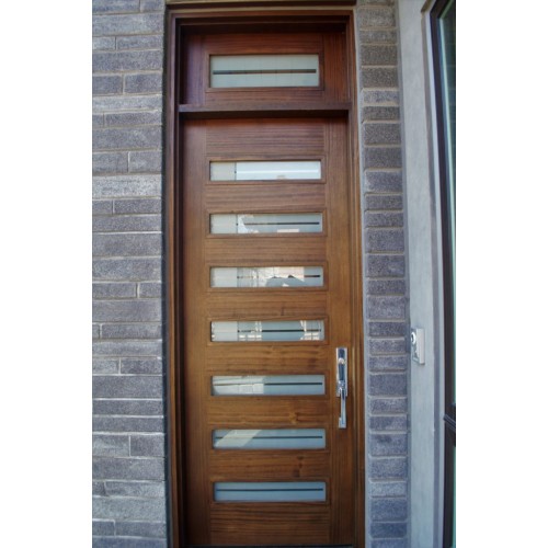 Wood single 7 panel door with glass inserts