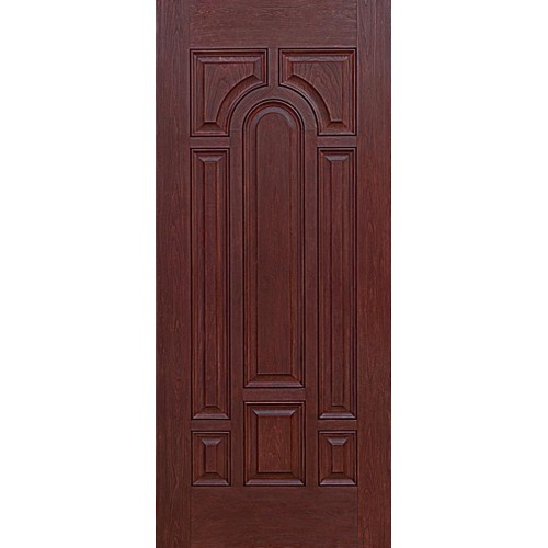 This eight panel fiberglass entry door is designed with a distinctive center arch, elevating the elegance of the home entrance. Customize with your choice of stain finish options.